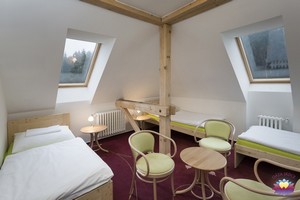 Kromě pokojů je k dispozici velké množství dalších prostor - dva velké sály a celá řada menších místností pro pořádání SIGů a dalších akcí.
